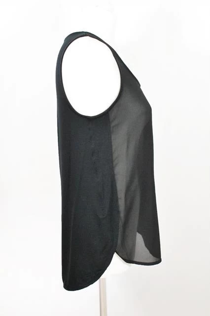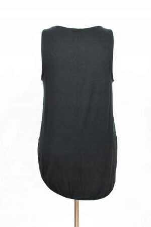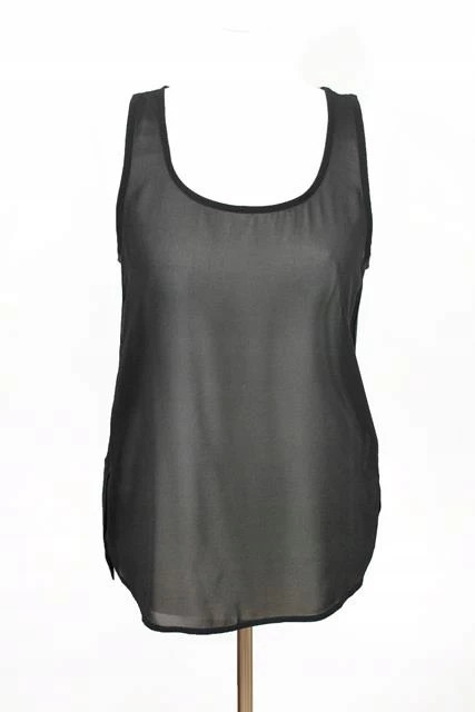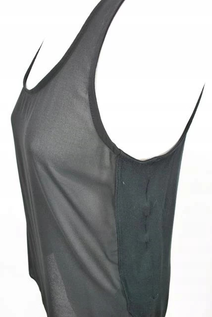 Luźny top bez rękawów z prześwitującym przodem. Tył i boczki nieprześwitujące, materiał wiskozowy.