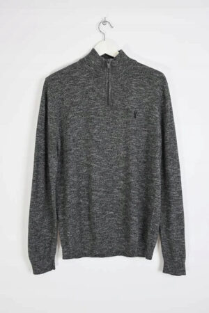 Sweter w klasycznym odcieniu szarości to uniwersalny element garderoby, idealny na chłodniejsze dni. Wykonany z miękkiej dzianiny, zapewnia komfort noszenia, a zamek przy stójce dodaje nowoczesnego akcentu. Doskonale sprawdzi się zarówno w casualowych stylizacjach z jeansami, jak i w bardziej eleganckich zestawach biurowych.