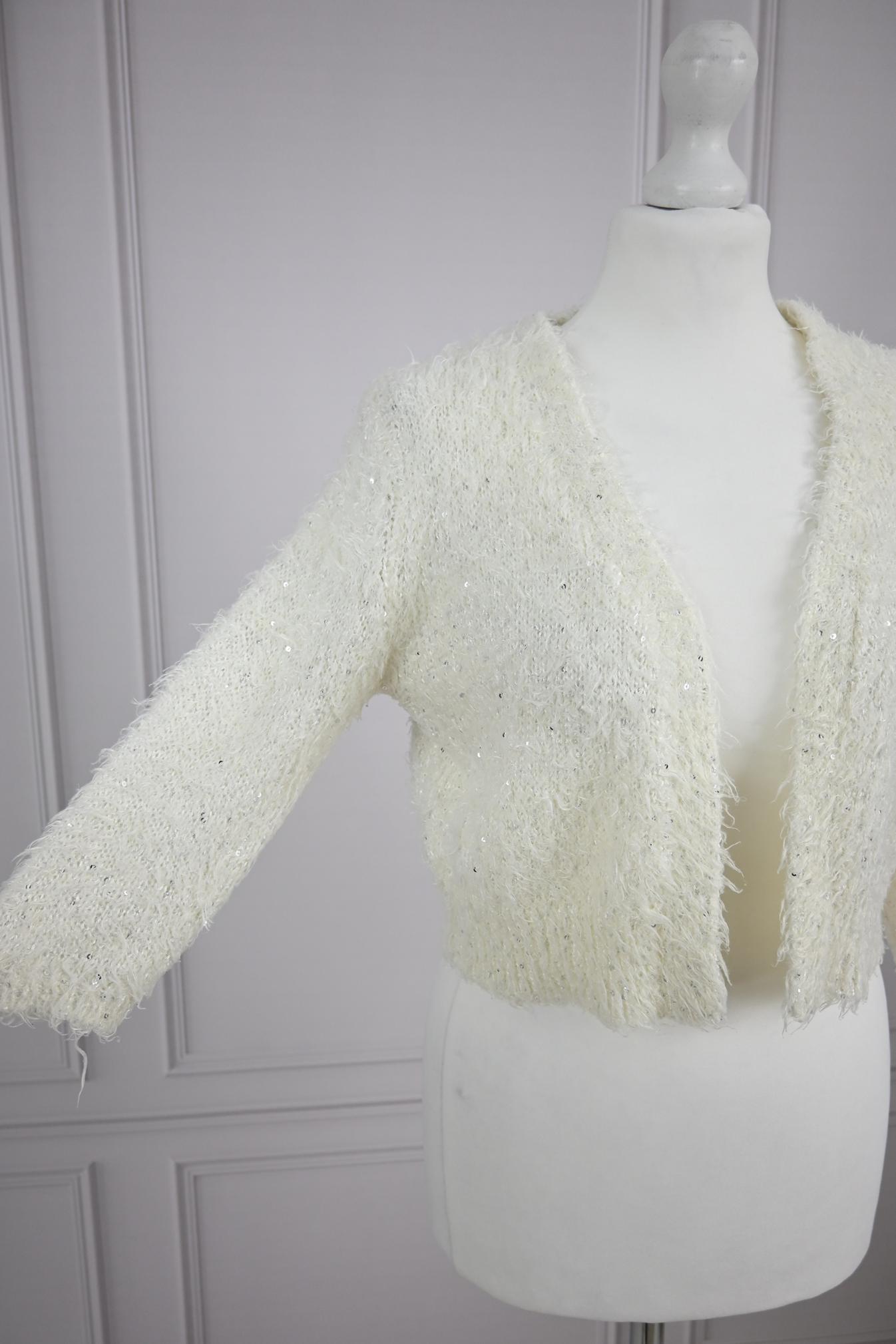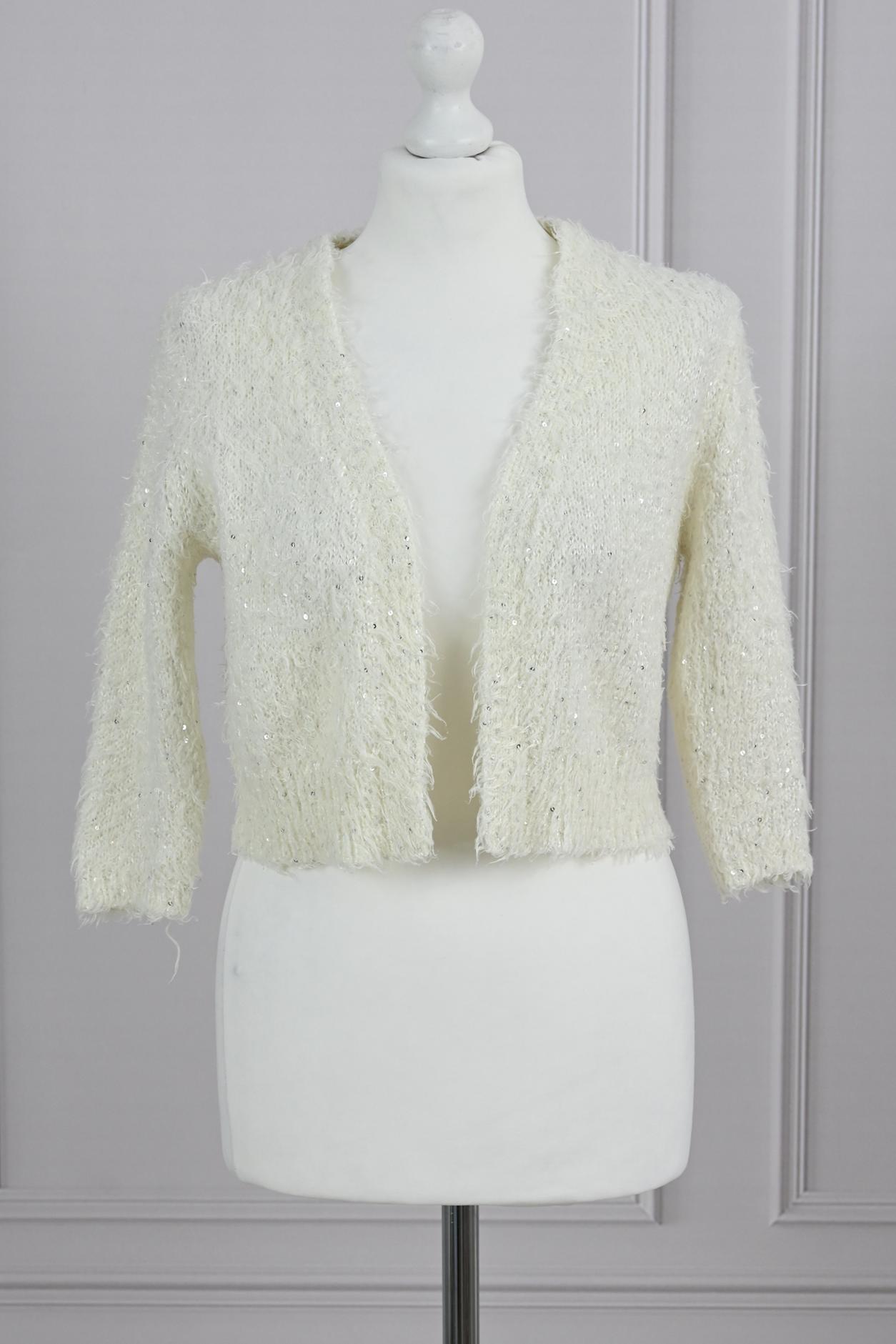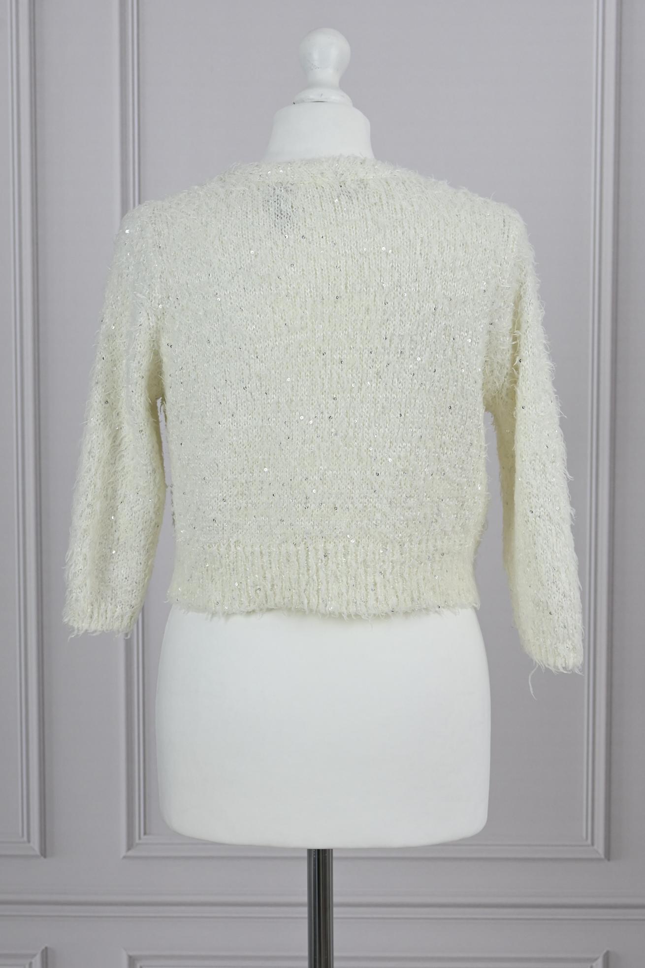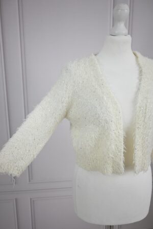 Sweter narzutka kremowa z cekinami bolerko długie włosie Atmosphere M 38